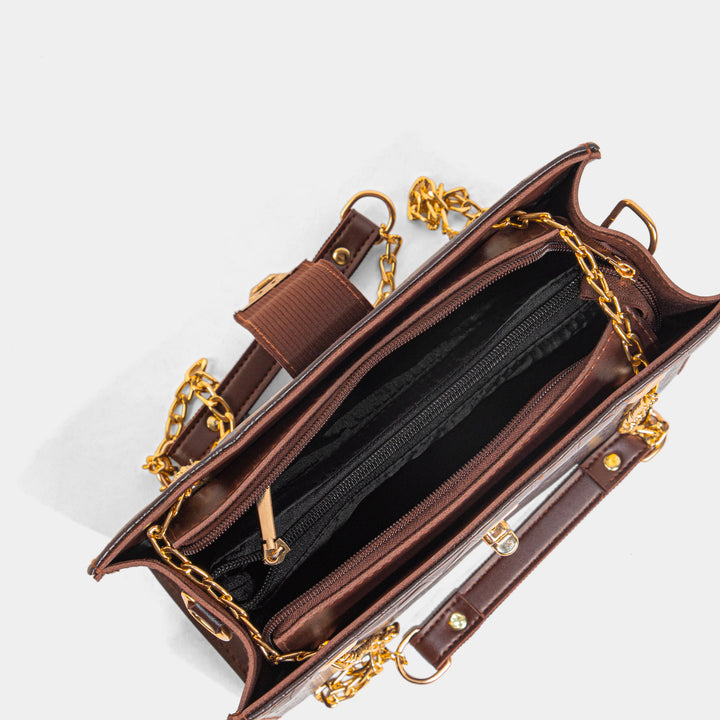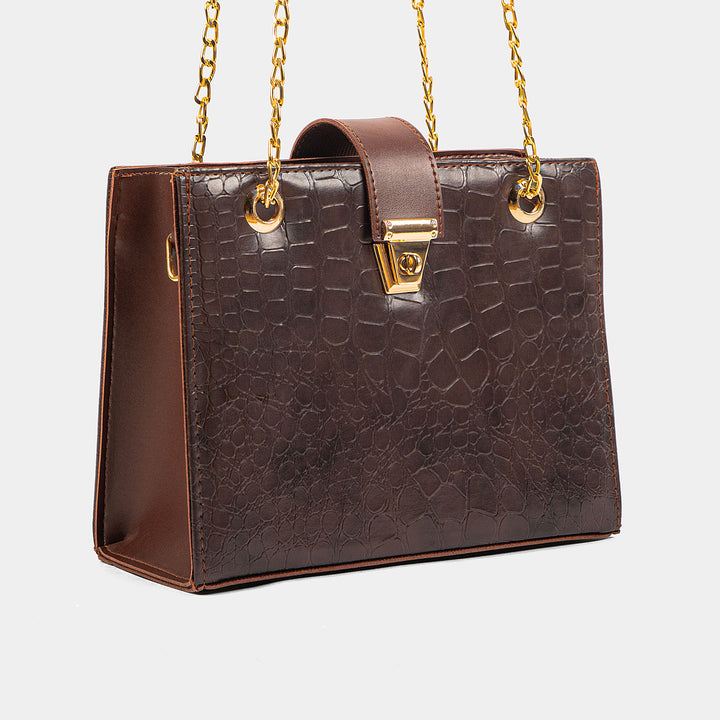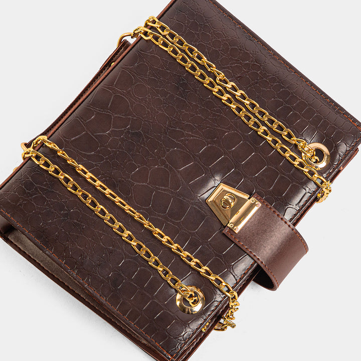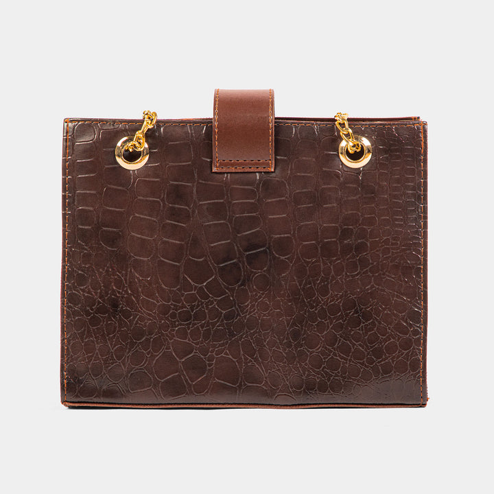 Command attention with this stunning, structured chocolate brown crossbody bag, a true statement piece blending vintage charm with modern luxury. The rich faux-leather features a deeply textured crocodile-embossed pattern, giving it a high-end, sophisticated feel.