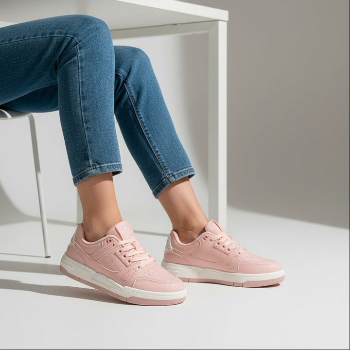 These fashionable pink and white casual sneakers offer a fresh and contemporary addition to any wardrobe across Pakistan. The upper features various shades and textures of pink, with smooth panels and subtle perforated details on the toe box. The design includes classic pink laces and a distinct white midsole that provides a clean contrast against the pink upper and outsole. With their modern silhouette and comfortable construction, these sneakers are a versatile choice for everyday wear, light activities, or adding a stylish pop of color for customers nationwide.