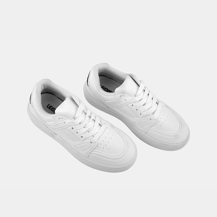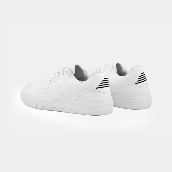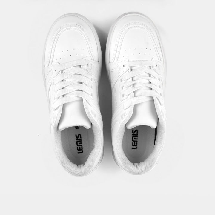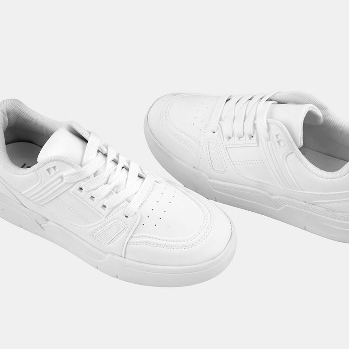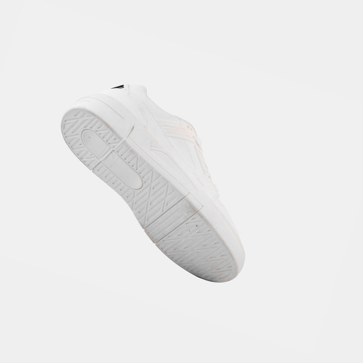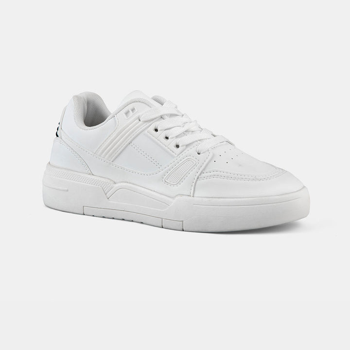 A classic pair of white casual sneakers, offering a timeless and versatile option for fashion across Pakistan. The clean, monochromatic design features an all-white upper with subtle paneling and perforated details on the toe box. White laces and eyelets maintain the sleek aesthetic, seamlessly blending with the crisp white midsole and outsole. These comfortable and adaptable sneakers are an essential wardrobe staple, easily paired with various outfits for everyday wear nationwide. Their simple yet refined look ensures they remain a popular choice for customers throughout the country.
