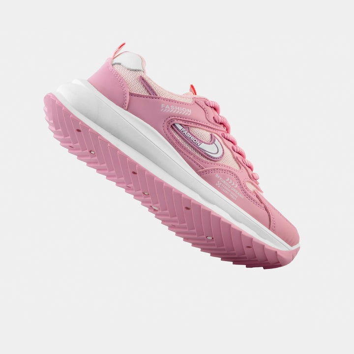 Add a pop of color to your daily routine with these comfortable women's pink sneakers. The mix of mesh and synthetic materials provides a lightweight, breathable feel, while the thick sole offers excellent cushioning. These shoes are the ideal everyday footwear, blending a cute, feminine style with all-day wearability.
