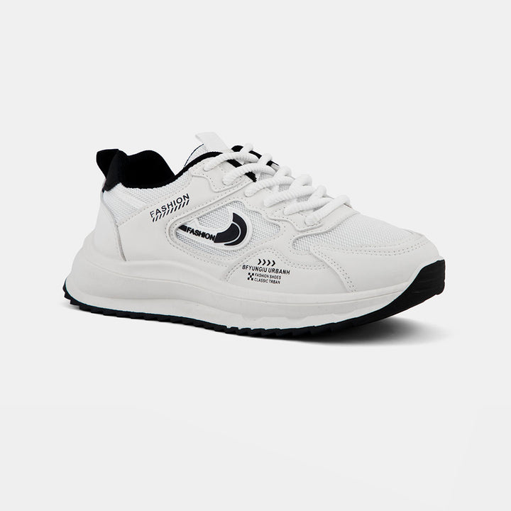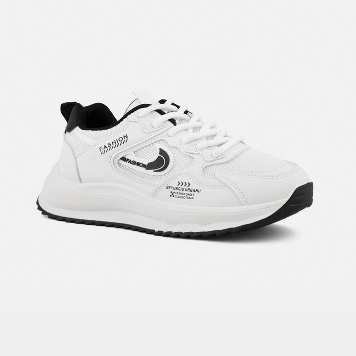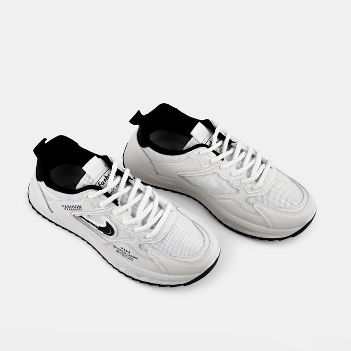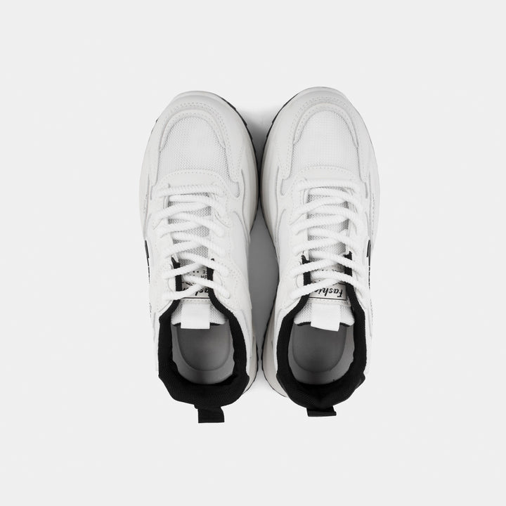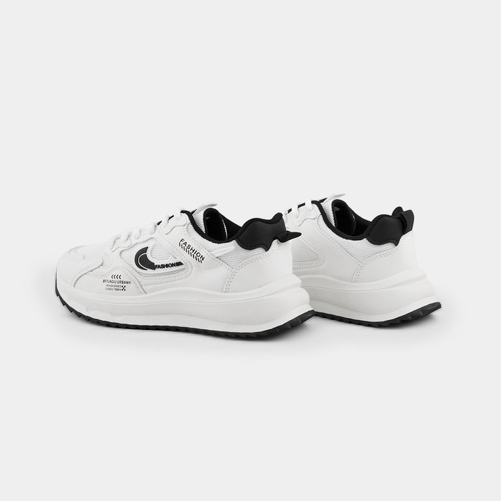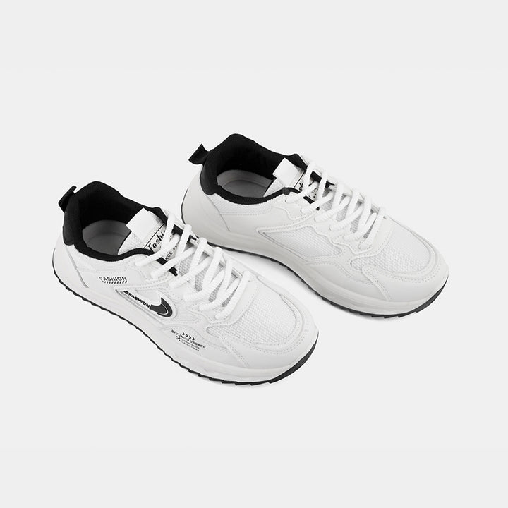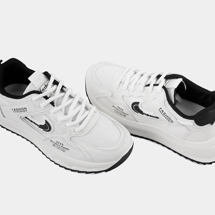 A modern and eye-catching sneaker that perfectly blends style and comfort. This shoe features a clean white base with bold navy overlays and a distinctive star-shaped cutout on the side, adding a unique touch. Its fashionable chunky sole provides excellent support for all-day wear, while the secure lace-up closure ensures a snug fit. This is the ideal footwear for anyone looking to elevate their streetwear style with a standout piece.