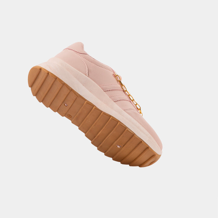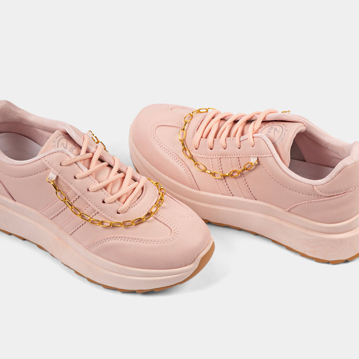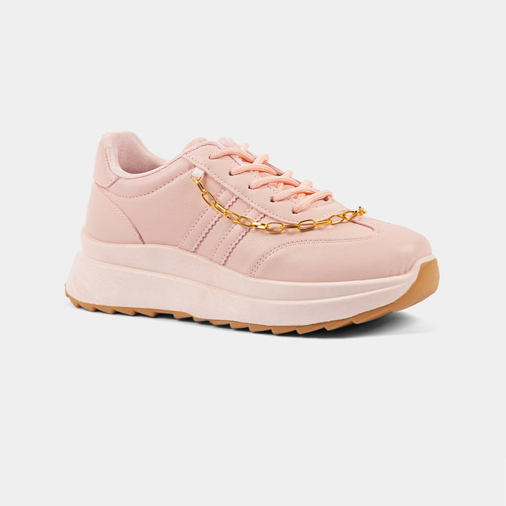 Step into elevated style and undeniable glamour. Shop the Chic Pink Platform Sneakers with Gold Chain today at lemis.pk and define your trendsetting look!
