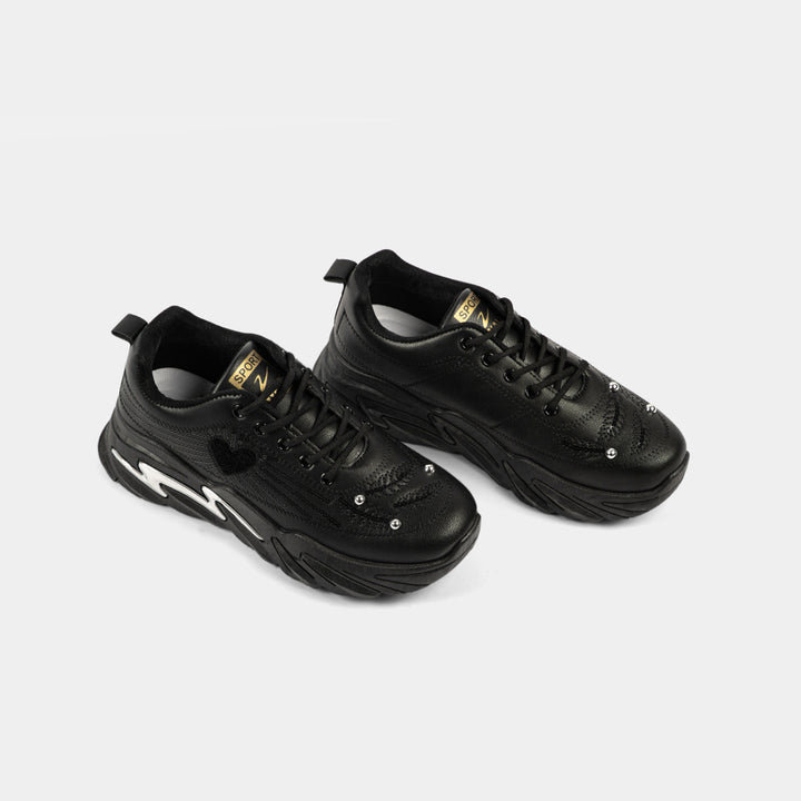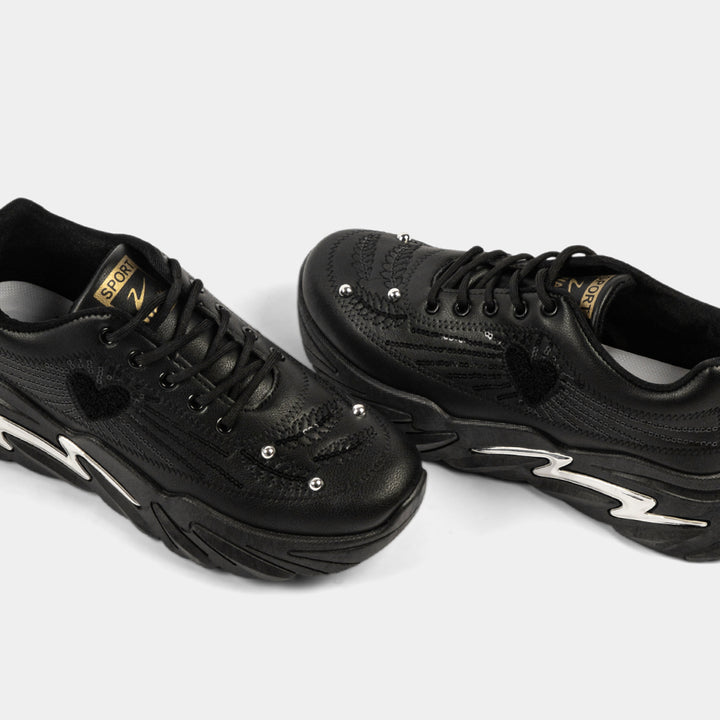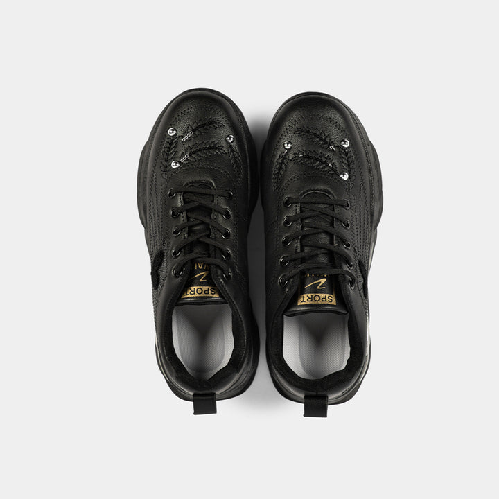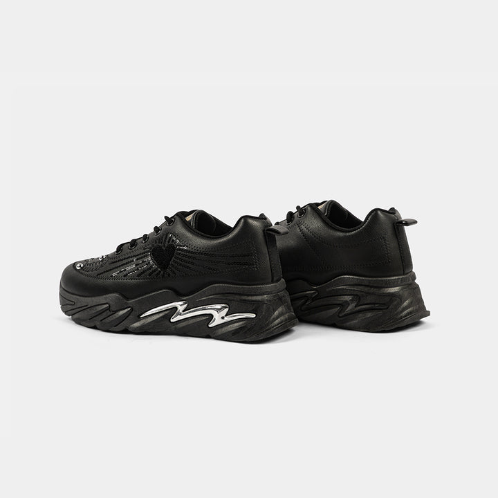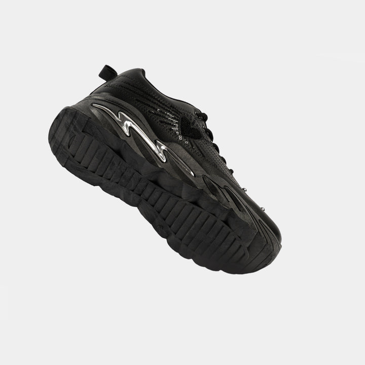 Unleash your boldest street style with these dramatic, uniquely textured platform sneakers. They feature an aggressively sculpted sole and a lightning-bolt inspired metallic accent for an electrifying, futuristic look that demands attention. The upper is crafted with intricate stitching and features striking studded details and a fuzzy accent, adding layers of sophisticated edge. Providing maximum comfort and exceptional support, these shoes are the ultimate fusion of avant-garde design and functional, durable construction.