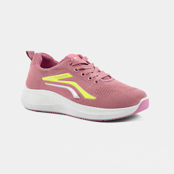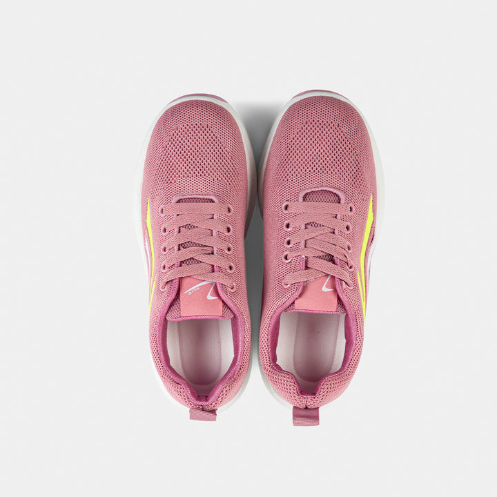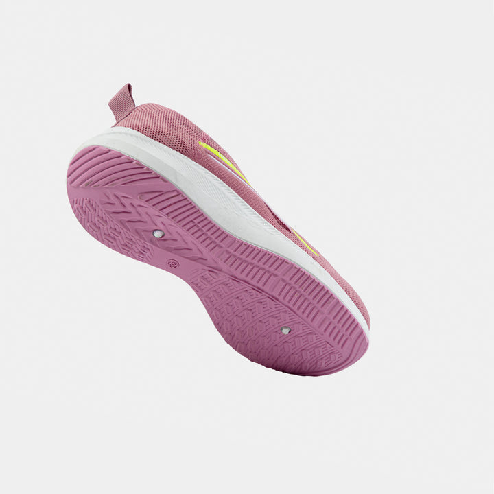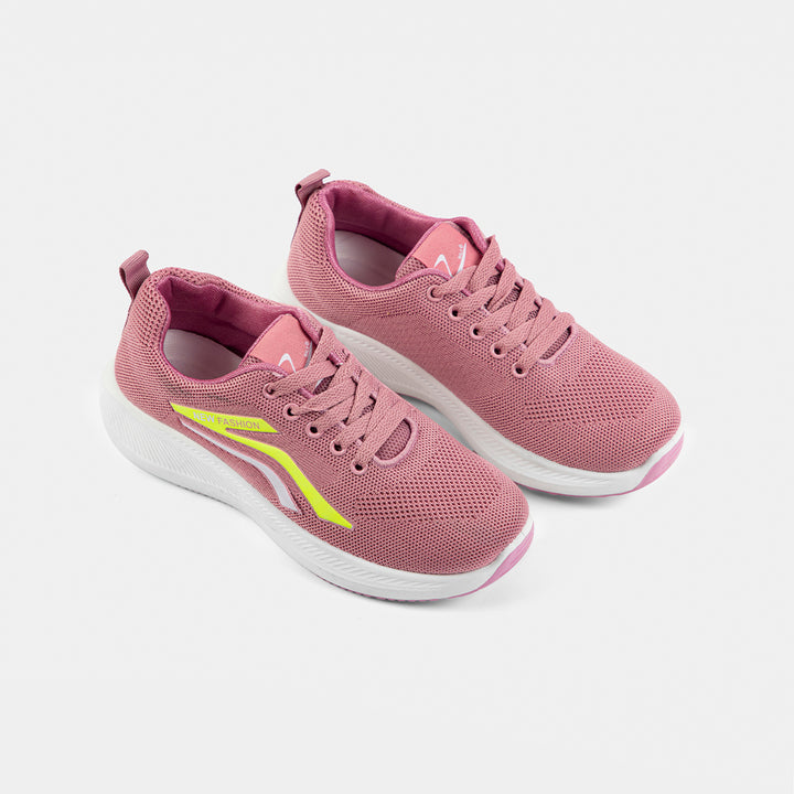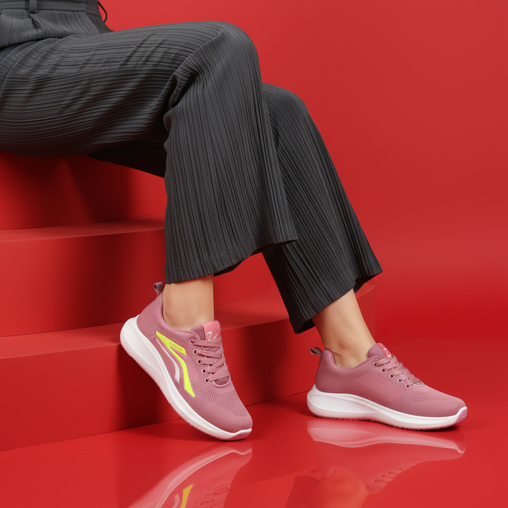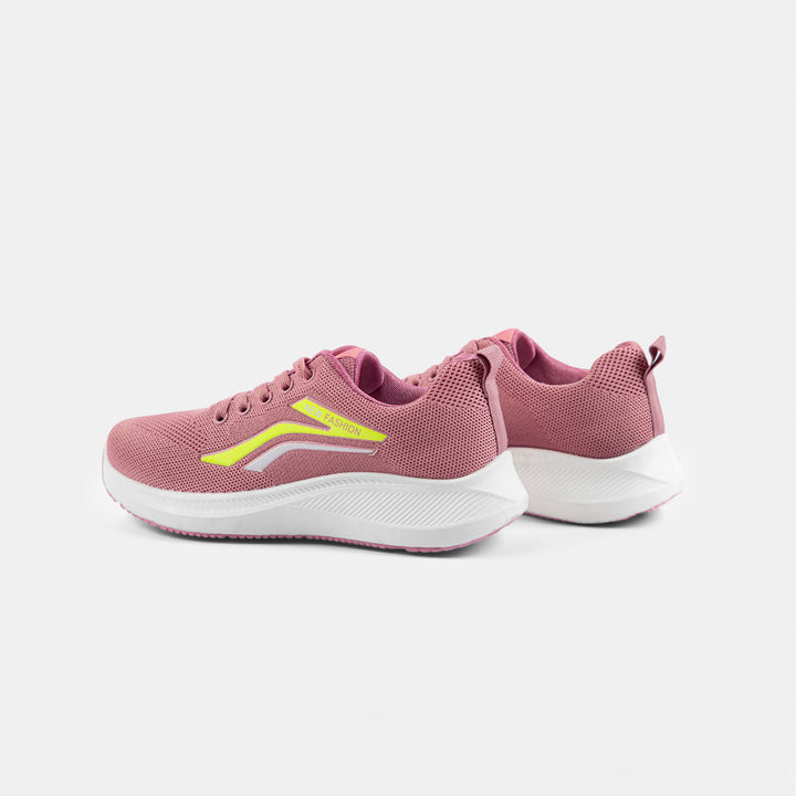 Women's Pink Knit Running Shoes with Neon Accents | Fashion Sports Trainer - These breathable, comfortable sneakers feature a dusty rose pink knit upper, a supportive white sole, and striking neon yellow details for a modern, active look. Ideal for daily wear, walking, or light workouts.