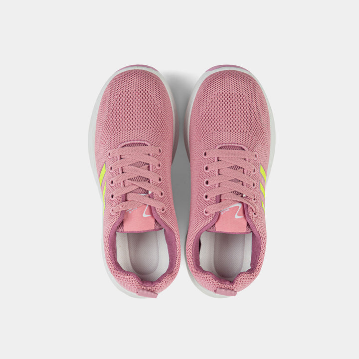 Channel dynamic, fast-paced style with these high-contrast athletic trainers, perfect for running errands or making a bold statement. The shoe features a lightweight black mesh upper for essential ventilation, complemented by vibrant neon pink and yellow accents that deliver an energetic pop of color. The bold graphic overlay on the side instantly elevates the look with a modern, sporty vibe. Built on a thick, sculpted white midsole, these sneakers provide excellent cushioning and a comfortable ride for all-day wear. Secure the fit with the classic lace-up design and step out in a pair that perfectly fuses performance aesthetic with fashion-forward flair.