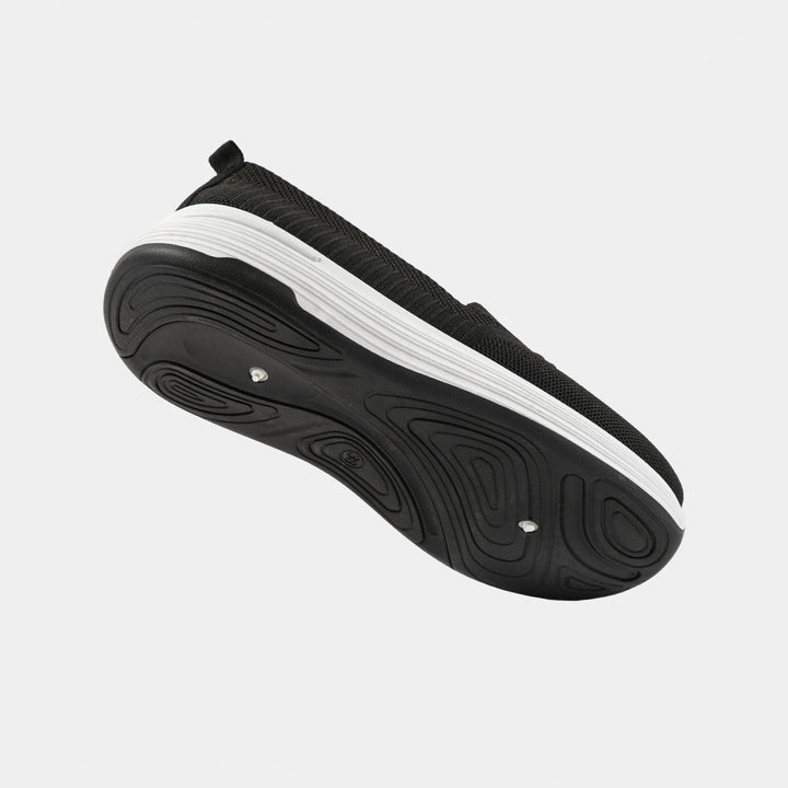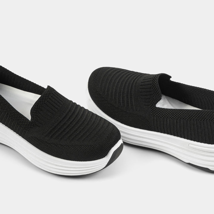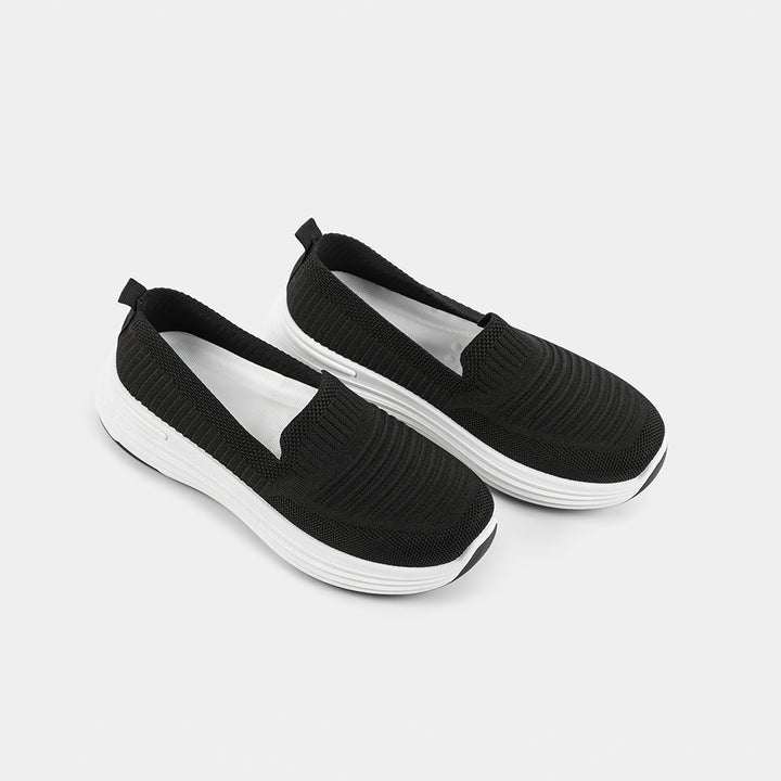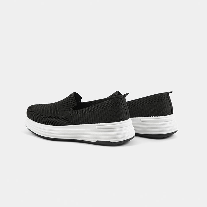 Experience unparalleled comfort with our stylish Black Knit Slip-On Comfort Shoes! Perfect for walking, running errands, or all-day wear, these modern joggers feature an ultra-soft, breathable knit upper that molds perfectly to your foot for a sock-like fit—say goodbye to tedious laces! The lightweight design and cushioned white platform sole provide excellent support and a subtle height boost, making them the ideal choice for Pakistani women who prioritize ease and health alongside style. Whether you need reliable footwear for hospital duty, university lectures, or daily bazaari trips, these soft sole black shoes are your new go-to. Order today and enjoy the convenience of Cash on Delivery (COD) all over Pakistan!