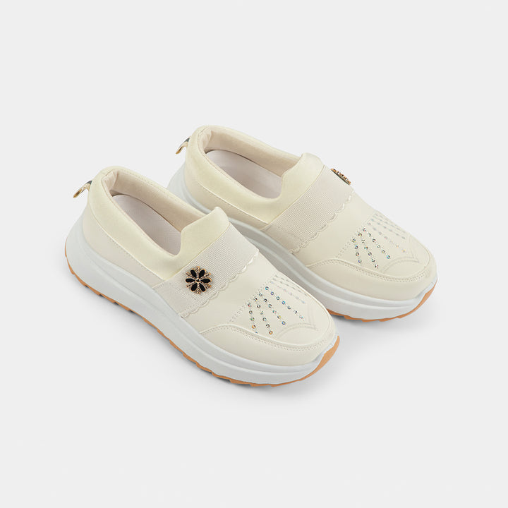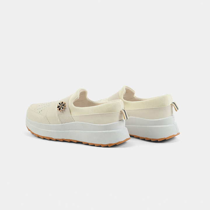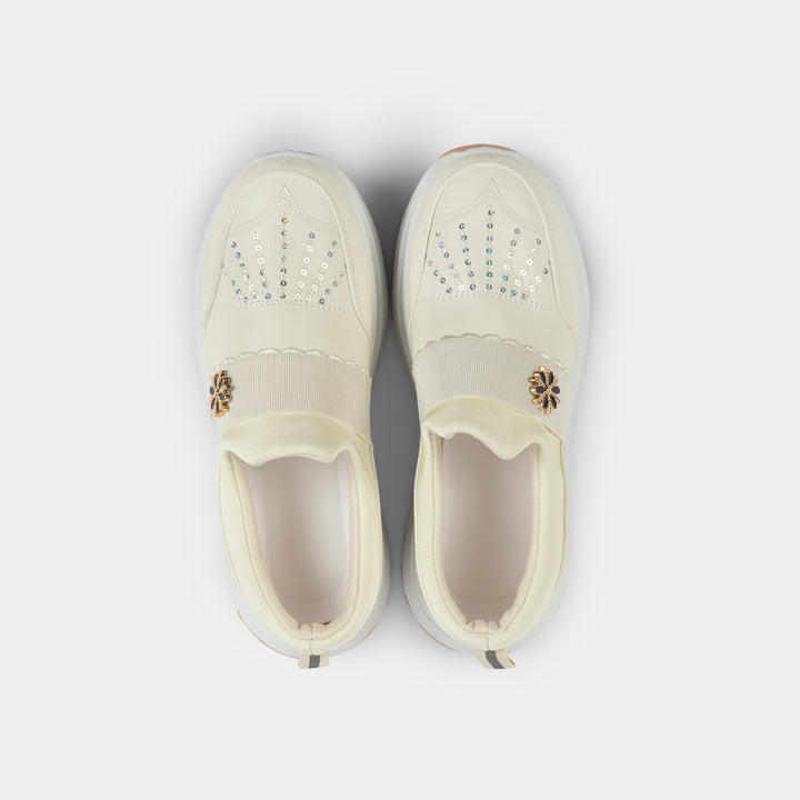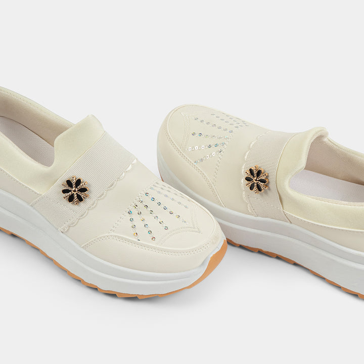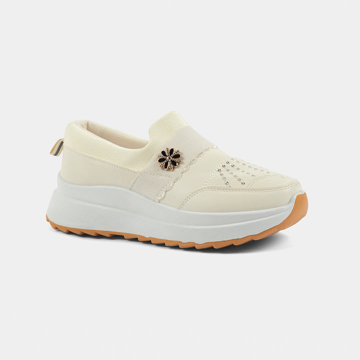 Discover the perfect blend of style and comfort with our latest collection of Ladies' Platform Sneakers, a must-have trend in Pakistan! Choose between 1. High-Fashion Chunky Lace-Ups (available in Black/Gold or Beige/Gold), featuring bold glitter accents and a statement high sole, perfect for parties, university, or adding celebrity flair to your look. 2. Embellished Comfort Slip-Ons (in beautiful Beige), which combine the trendy platform base with easy slip-on convenience and delicate rhinestone/flower embellishments for a sophisticated, all-day comfortable feel. All shoes offer excellent support and are crafted to keep you in step with global fashion trends. Shop the hottest high sole and fashion jogger styles today and enjoy peace of mind with Cash on Delivery (COD) available all over Pakistan!