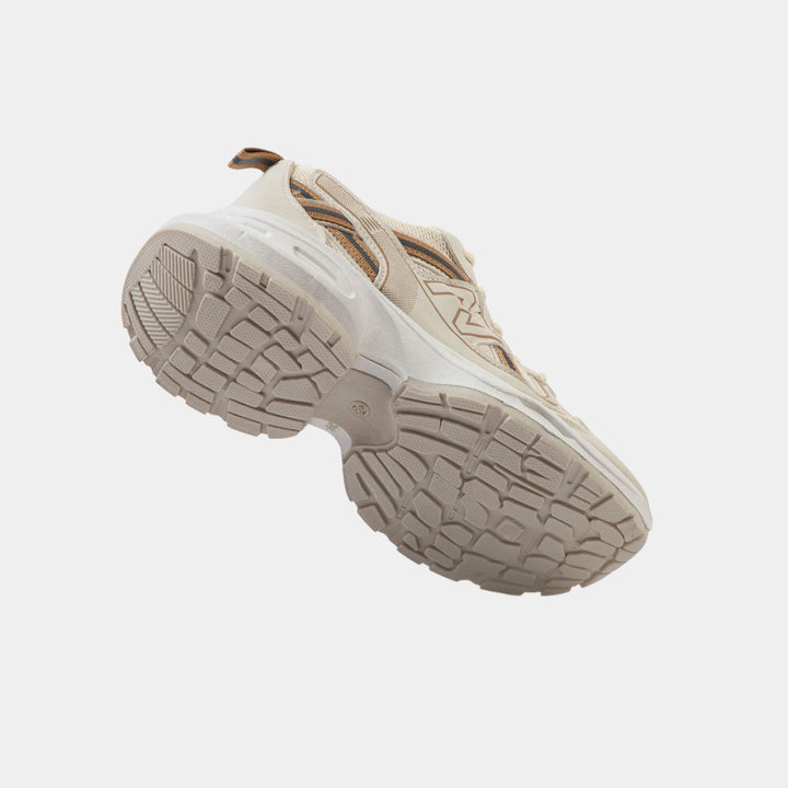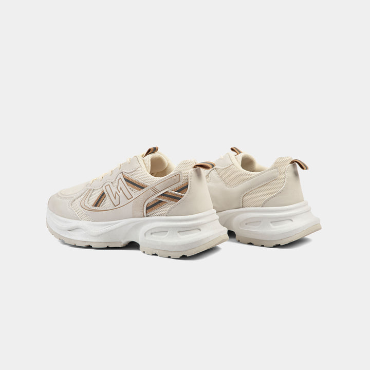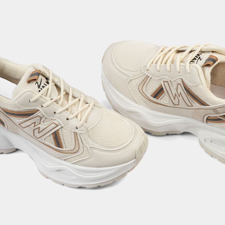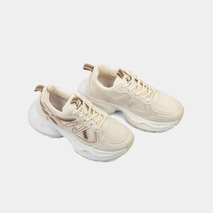 Upgrade your everyday look with our effortlessly chic Beige and Brown Chunky Platform Sneakers, the perfect fusion of retro-inspired design and modern comfort, highly sought after by fashion enthusiasts across Pakistan. These versatile fashion sneakers feature a breathable mesh and durable faux leather construction in a trending neutral palette of cream and beige. The eye-catching design includes striking brown and gold striped accents, adding a sporty yet sophisticated touch. Sitting atop a substantial, sculpted white chunky sole, these trainers offer both a subtle lift and superior cushioning, making them ideal for long days on your feet—whether you're navigating university campuses, running errands in Karachi, or enjoying a casual day out in Islamabad. With a secure lace-up closure and a convenient pull tab, these shoes are both practical and stylish. Don't miss out on the dad shoe trend; secure this pair of trendy ladies' footwear online and make them your go-to sneaker for any casual outfit in Pakistan.