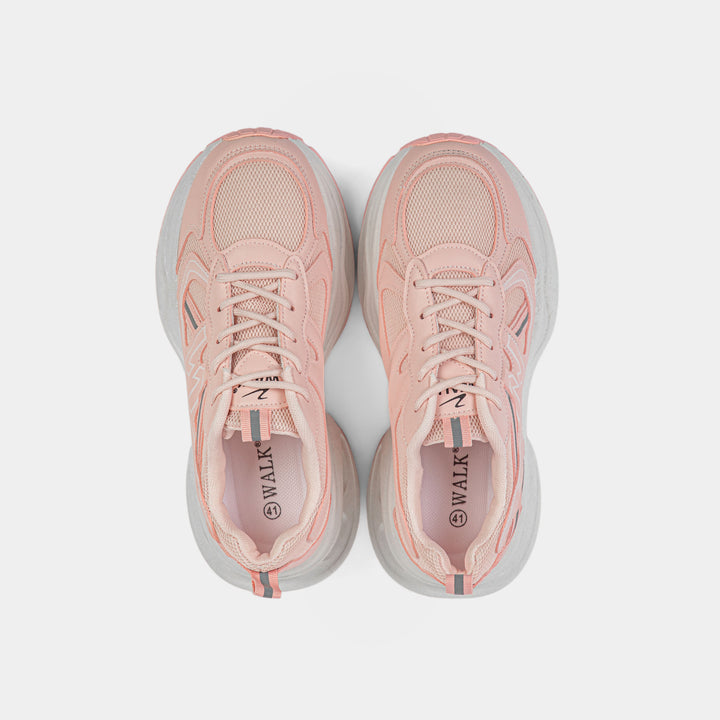 Step into the latest trend with our eye-catching Pink Chunky Shoes, the perfect blend of playful color and retro-inspired style, highly popular among fashion-conscious women and university students across Pakistan. These trainers feature a breathable mesh and durable faux leather upper in a sweet, soft baby pink hue, making them a vibrant statement piece. The design includes subtle grey accent stripes and a contrasting bold white 'M' logo on the side. Built on a sculpted, oversized white and pink chunky sole, these shoes deliver superior cushioning and stability, ensuring all-day comfort whether you're shopping, studying, or enjoying a casual day out. If you love the athleisure look and want to add a feminine touch to your footwear collection, these pink chunky trainers are a must-have. Secure this trendy pair of comfortable joggers online in Pakistan today!