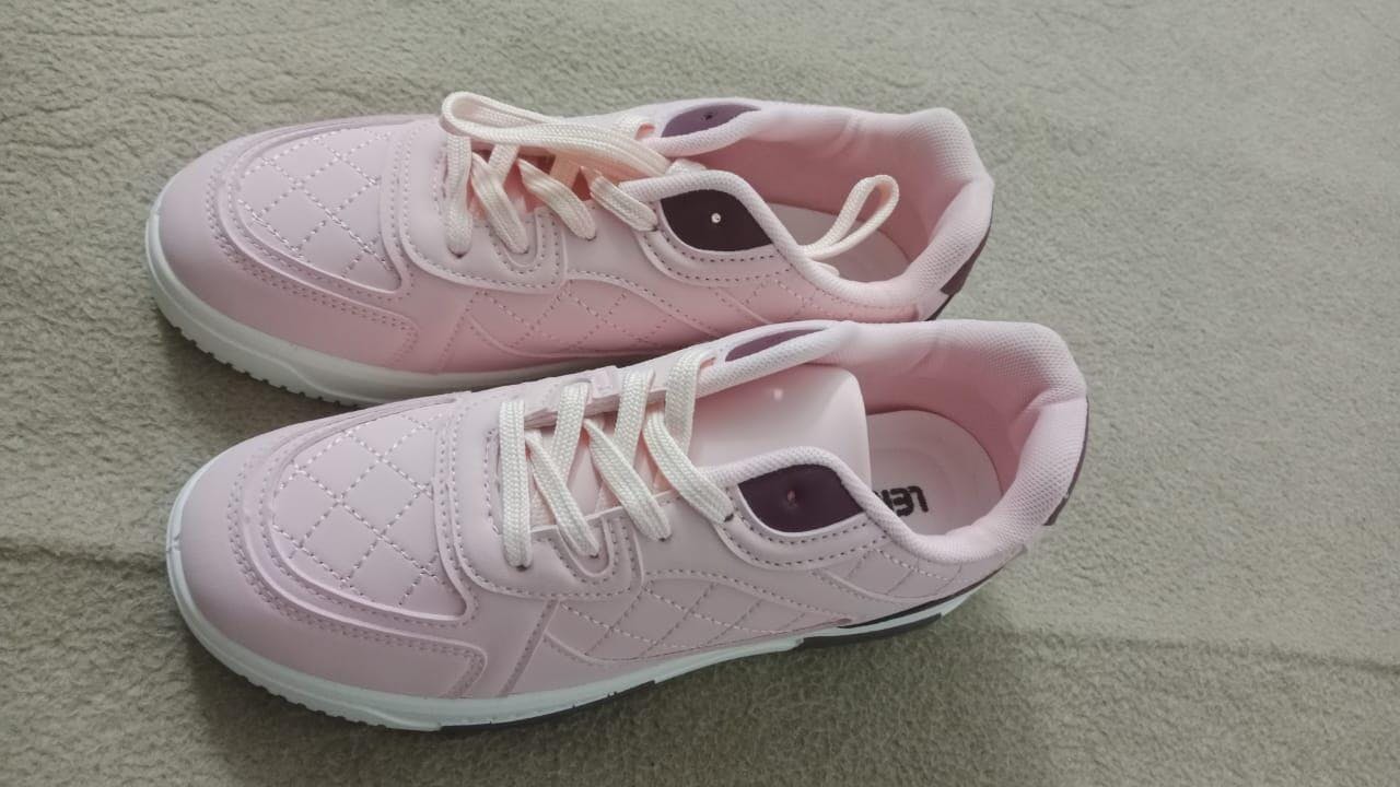 Add a touch of elegance to your footwear collection with these stylish pink sneakers. Featuring a quilted design and a sleek burgundy trim, these sneakers are perfect for those who value both fashion and comfort.