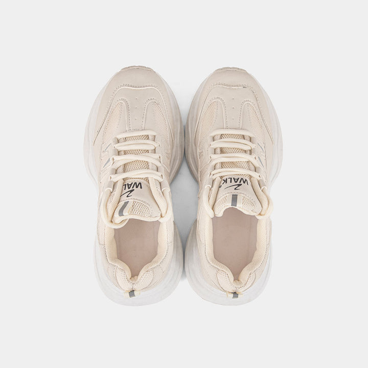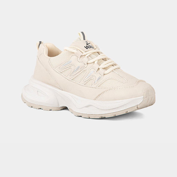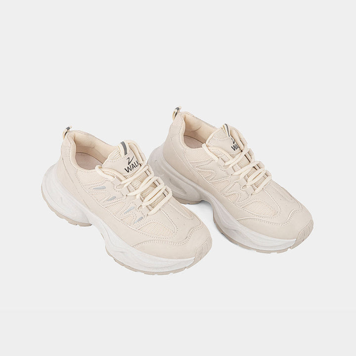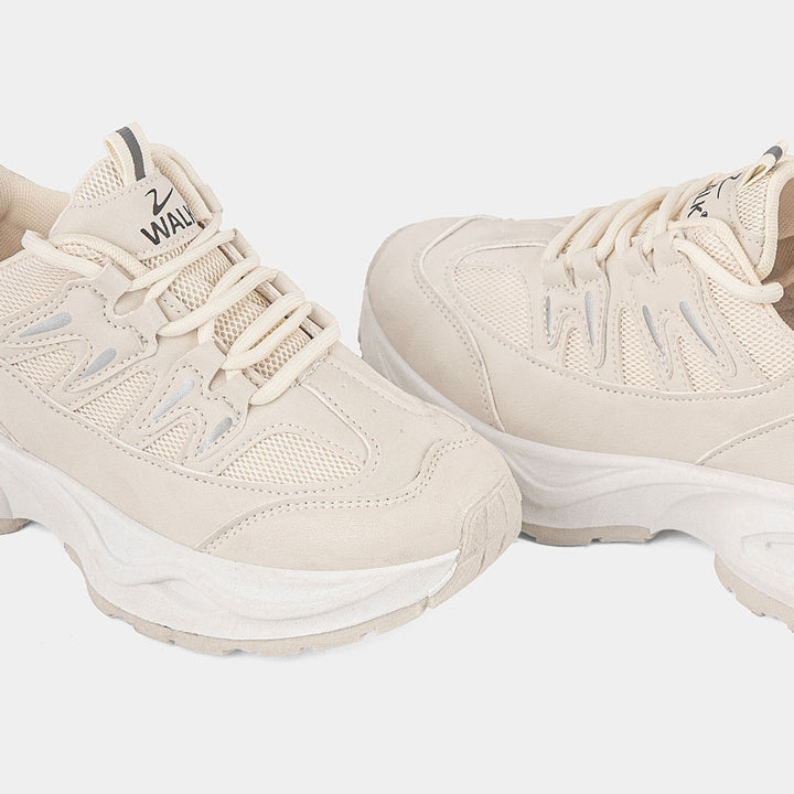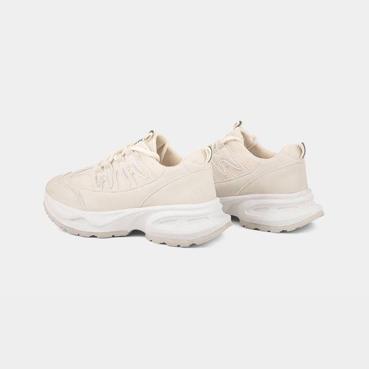 Elevate your footwear collection with Lemis Cream Chunky Sneakers. Featuring a bold, textured sole for added height and durability, these sneakers are designed to stand out. The lace-up closure ensures a secure and adjustable fit, while the combination of a mesh and leather upper adds both breathability and sophistication. A geometric pattern on the upper gives these sneakers a unique, modern edge, making them the perfect choice for adding style to any casual or athleisure look. Step into comfort and contemporary design with Lemis Cream Chunky Sneakers.